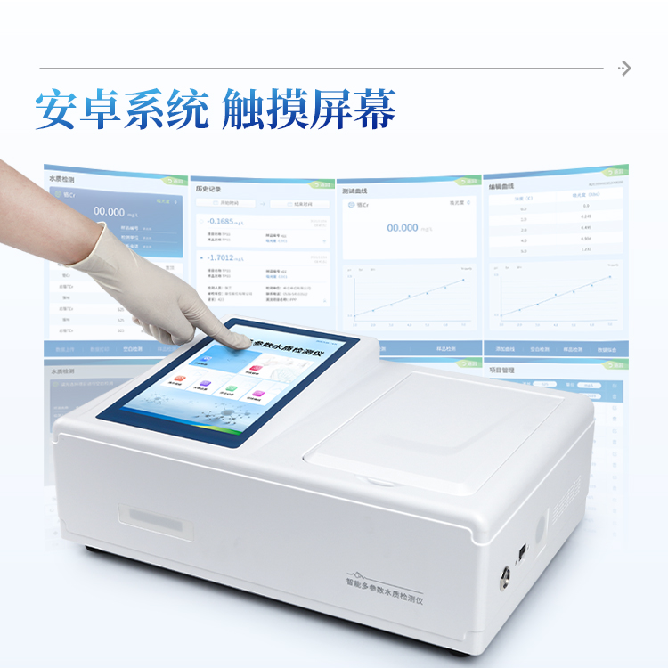 本仪器主要检测水质亚硝酸盐氮浓度指标,兼具智能数据分析功能,图表、列表显示数据,分析一目了然;高清晰度彩色液晶触摸显示屏,Android智能操作系统,中文显示界面,中英文键盘,人性化操作,使用更简单。